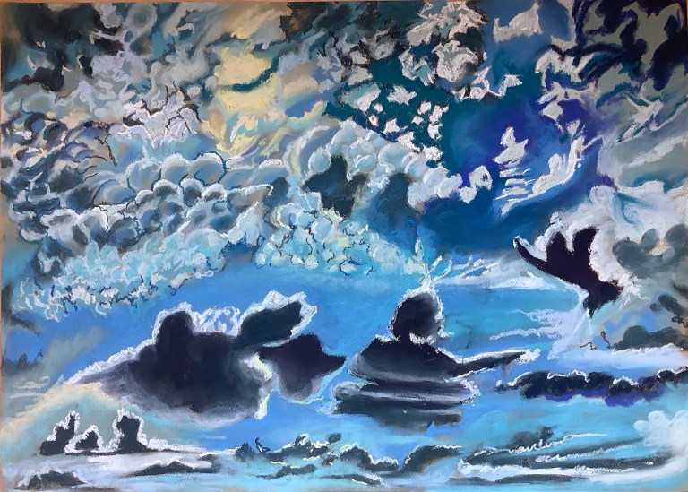 September 13, 2019July 31, 2023 Sky 71 Chalk Pastel on card 74 X 50 cms Framed £200 Share this: Share on X (Opens in new window) X Share on Facebook (Opens in new window) Facebook Like Loading...