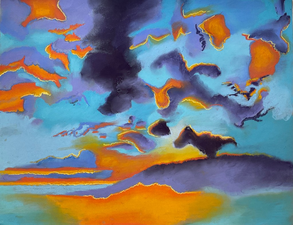 February 25, 2022March 22, 2023 Sky 78 Chalk pastel on card 50X65cms £120 Unframed collection only Share this: Share on X (Opens in new window) X Share on Facebook (Opens in new window) Facebook Like Loading...