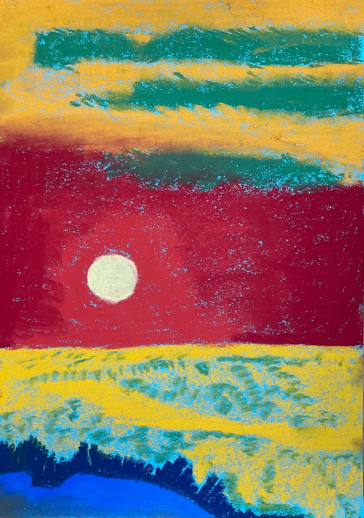 September 5, 2022September 1, 2023 Sky 88 Chalk pastel on paper 43 X 30 cms £30 unframed SOLD Share this: Share on X (Opens in new window) X Share on Facebook (Opens in new window) Facebook Like Loading...