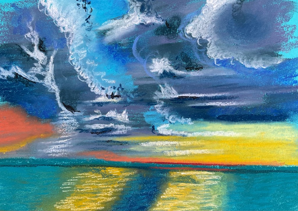 August 31, 2023 Sky 106 Chalk pastel on paper 40 X 30 cms. Framed £45 Share this: Share on X (Opens in new window) X Share on Facebook (Opens in new window) Facebook Like Loading...