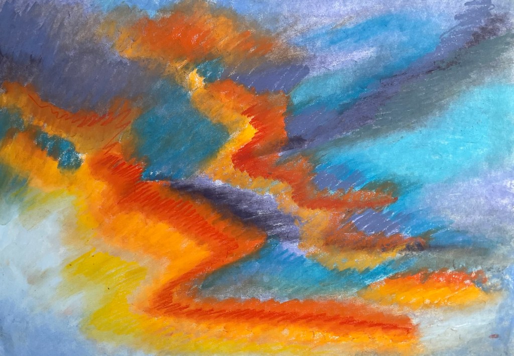 December 16, 2025 Sky 117 Chalk pastel on paper Unframed. 80 X 60 cms £100 unframed. £200 framed. Share this: Share on X (Opens in new window) X Share on Facebook (Opens in new window) Facebook Like Loading...